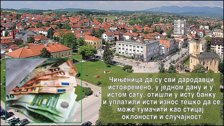 Za jedno su u Opštinskom odboru SNS-a ipak u pravu, ko će i koliko trošiti sopstveni novac, stvar je ličnog izbora. Ali ko će i koliko prati prljavi stranački novac ili trošiti novac građana je stvar za istragu, kako nadležnih organa tako i javnosti. Na drugoj strani, činjenica da su svi darodavci istovremeno, u jednom danu i u istom satu, otišli u istu banku i uplatili isti iznos teško da se može tumačiti kao sticaj okolnost i slučajnost. Pre će biti da je reč o još jednoj u nizu brutalnih uvreda na račun zdravog razuma i inteligencije građana.